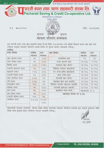 ब्याजदर परिवर्तन सम्बन्धमा।